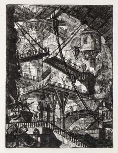 Carceri tav. VII: Un interno immenso con un ponte levatoio