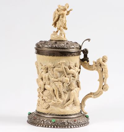 Importante Tankard In Avorio E Argento