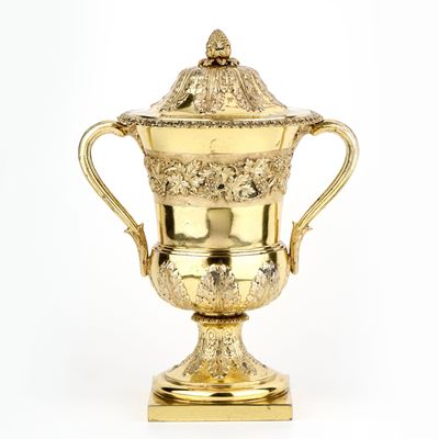 Importante Coppa Con Coperchio In Argento Vermeille