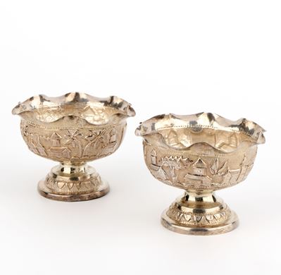 Coppia DI Cestine Circolari In Argento