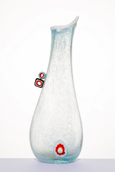 ANZOLO FUGA, Raro vaso a bollicine in vetro con murrine applicate, A.V.E.M., 1960