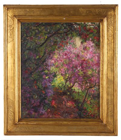 Emilio Sommariva, Il viale delle azalee, olio su tavoletta