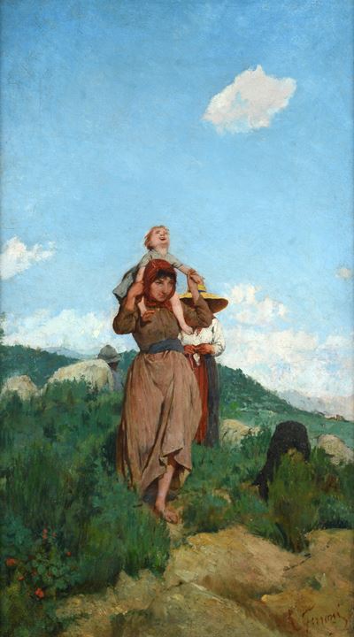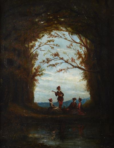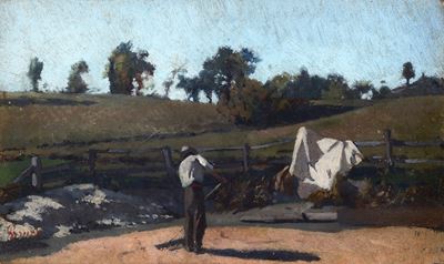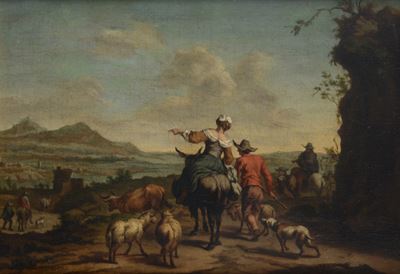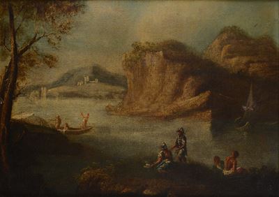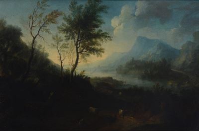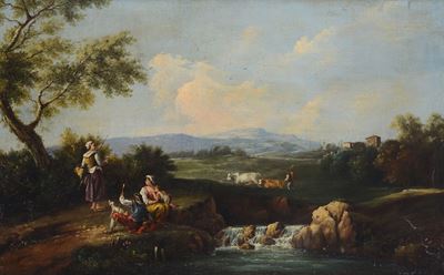 Paesaggio con pastori e ruscello