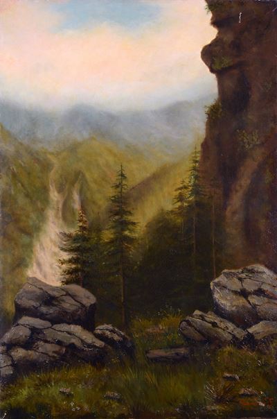 Paesaggio montano con figure