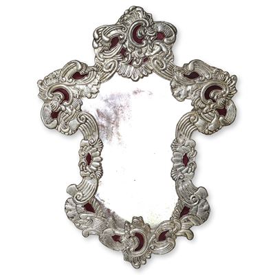 Grande specchiera da muro con struttura in legno rivestita con lamina in argento sbalzato