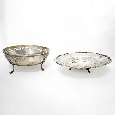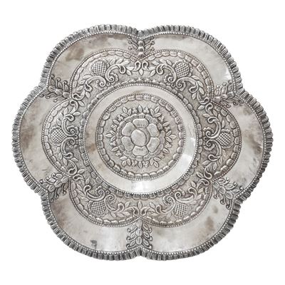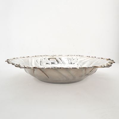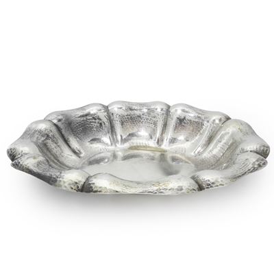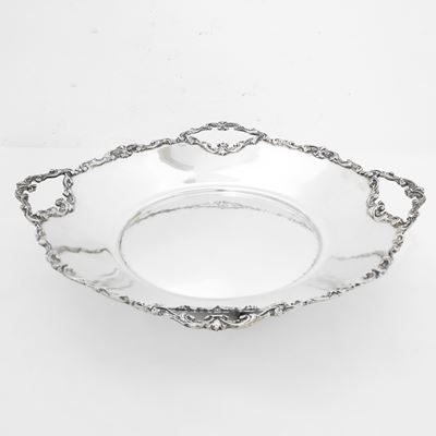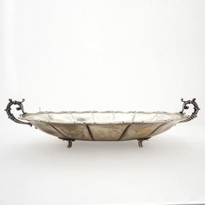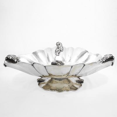 Ciatta in argento 800 con prese a foglie d'acanto e decoro a foglia in rilievo sul fronte e sul r...