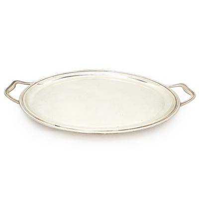 Vassoio rettangolare in argento 800 con bordo smeltato
