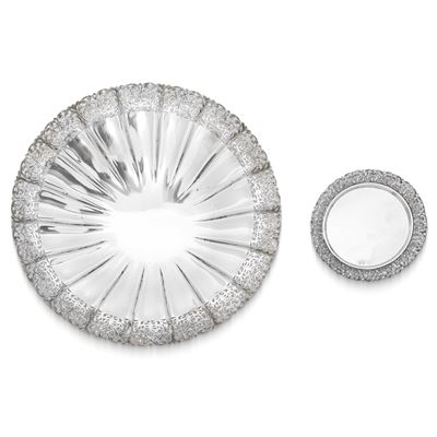 Sottobottiglia e n°6 sottobicchieri in argento 800