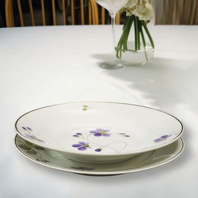 Servizio di piatti da 12, Richard Ginori, porcellana bianca con decoro le mammole, bordi profilat...