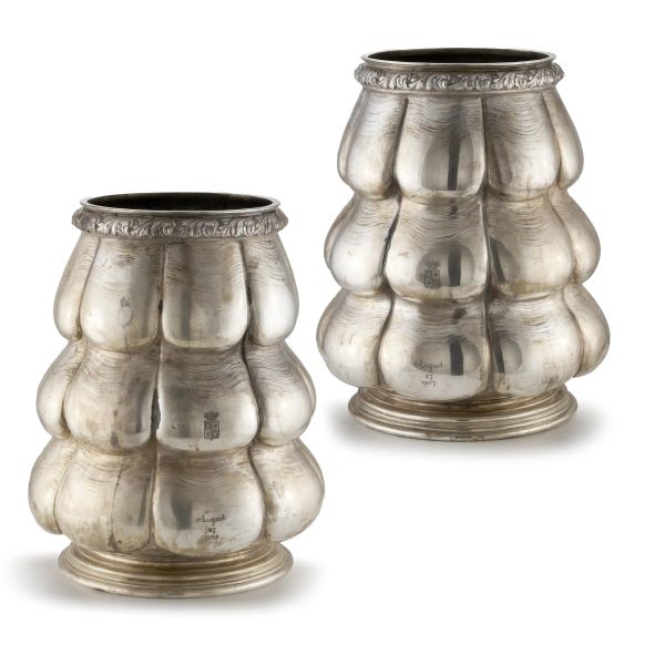 COPPIA DI GRANDI SALSIERE CON COPERCHIO, PARIGI, SECOLO XIX, ARGENTIERE MASON ODIOT