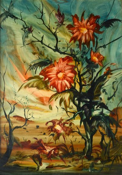 Paesaggio Surreale Con Fiori E Figure