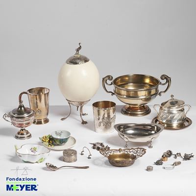 Uovo di struzzo con rapporti in metallo argentato