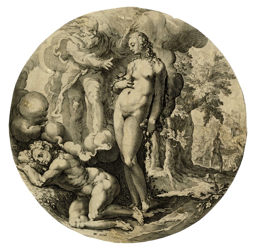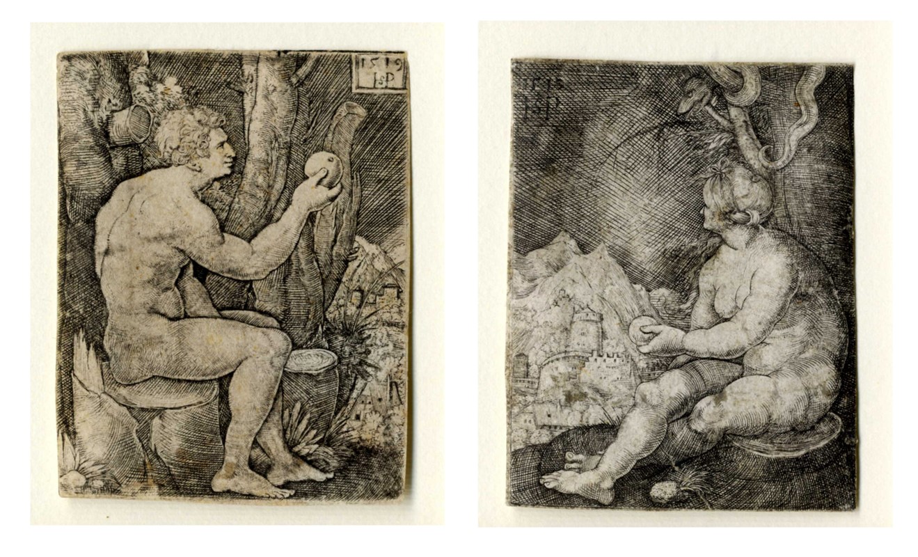 Adamo Ed Eva Seduti Su Tronchi D'Albero.