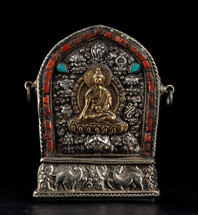 RELIQUIARIO GAU IN METALLO CON INSERTI IN PIETRA