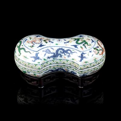 SCATOLA CON COPERCHIO IN PORCELLANA CON DECORO A SMALTI WUCAI