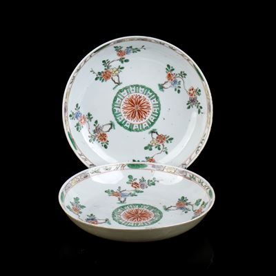 COPPIA DI PICCOLI PIATTI IN PORCELLANA 'FAMIGLIA VERDE'