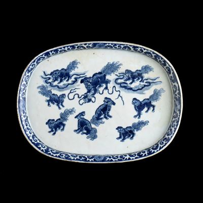 COPPIA DI GRANDI PIATTI IN PORCELLANA 'BIANCO E BLU'