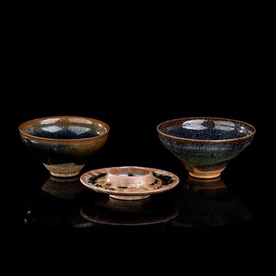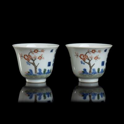 DUE TAZZINE IN PORCELLANA CON DECORO A SMALTI POLICROMI
