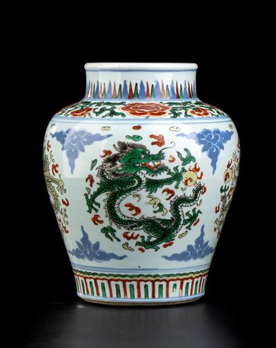 GIARA IN PORCELLANA CON DECORO A SMALTI POLICROMI