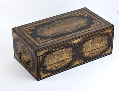 COMPLETO DA SCRITTURA IN LEGNO LACCATO E DORATO (SUZURIBAKO)