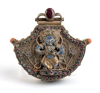 RELIQUIARIO GAU IN ARGENTO DORATO CON INSERTI IN PIETRE DURE E CORALLO