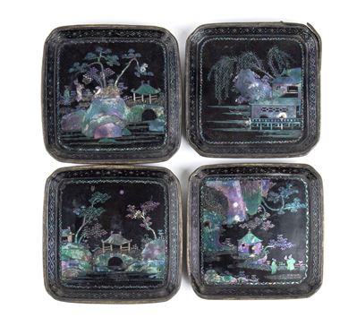 QUATTRO PICCOLI VASSOI IN LACCA BURGAUTÉ