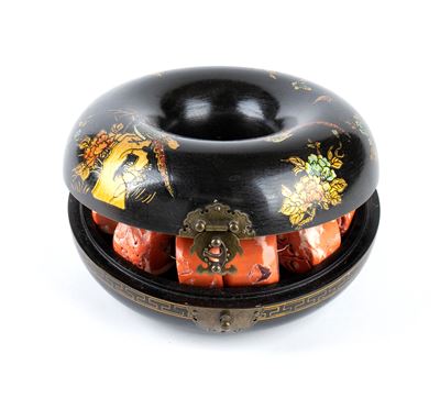 PORTAVIVANDE A TRE SCOMPARTI IN LEGNO LACCATO E DORATO, SAGEJUBAKO