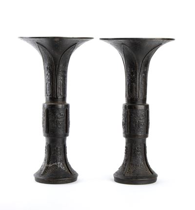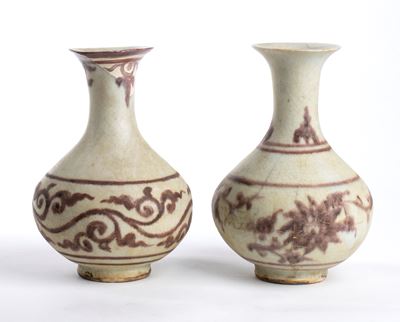 DUE VASI A BOTTIGLIA IN PORCELLANA CON DECORO IN ROSSO DI RAME