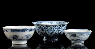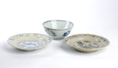 DUE PIATTINI E UNA CIOTOLA IN PORCELLANA 'BIANCO E BLU'