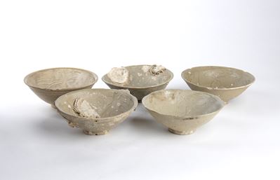 CINQUE CIOTOLE IN CERAMICA CON INVETRIATURA CÉLADON