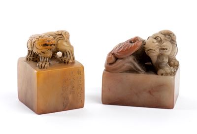 DUE SIGILLI CON PRESA A LEONE BUDDHISTA IN PIETRA