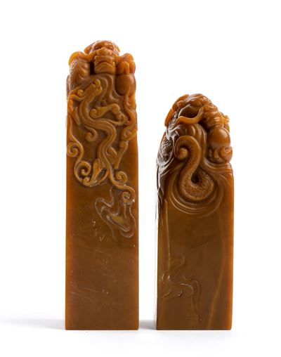 DUE SIGILLI IN PIETRA SAPONARIA SCOLPITI COME DIVINITÀ TAOISTA
