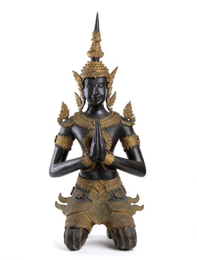 GRANDE SCULTURA IN BRONZO PARZIALMENTE DORATO DI GUARDIANO THEPANOM