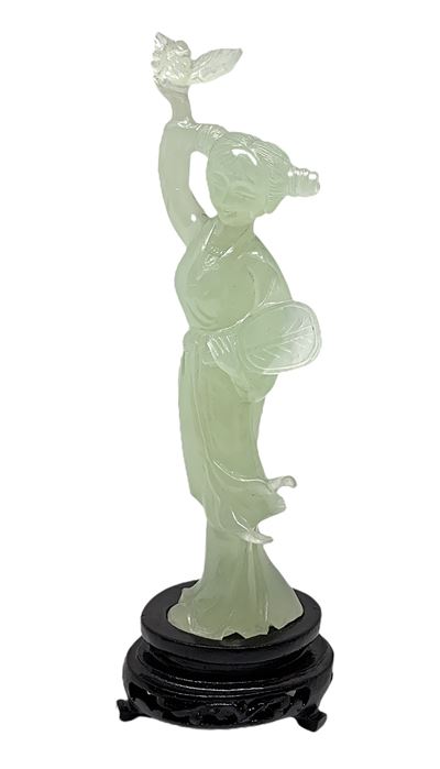 Figurina di due guanin madre e figlia in giada verde chiaro