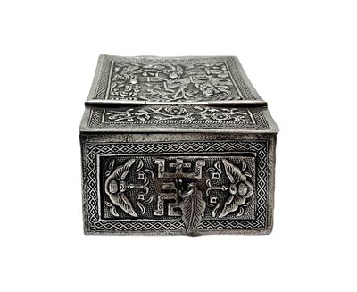 Piccola scatola con cassetto e specchio con scena di vita giapponese