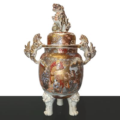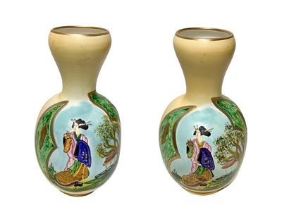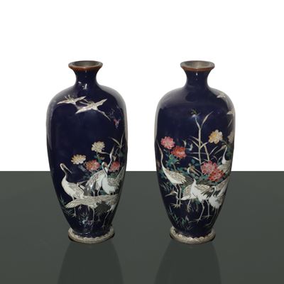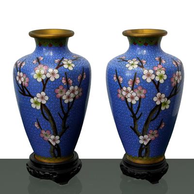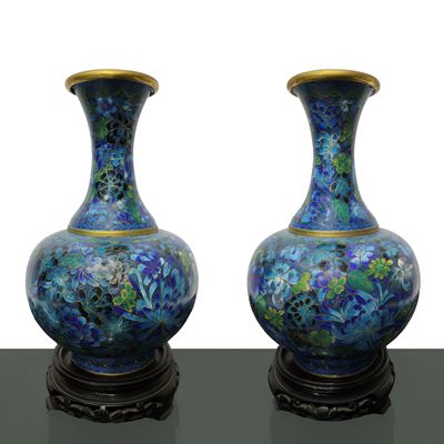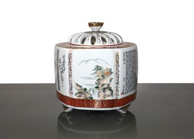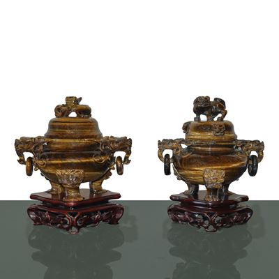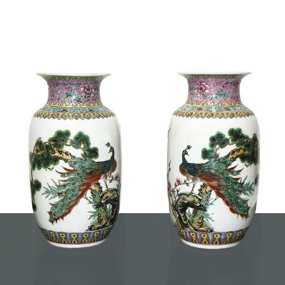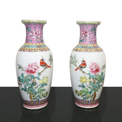 Coppia di portaincensi cinesi in porcellana, con decrazioni floreali
