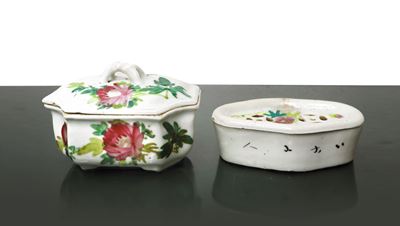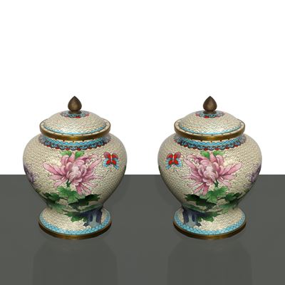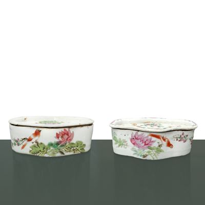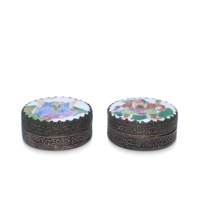N. 2 portapillole cinesi in metallo, con coperchio smaltato e dipinto