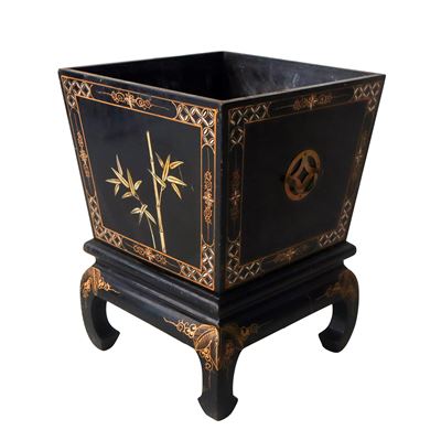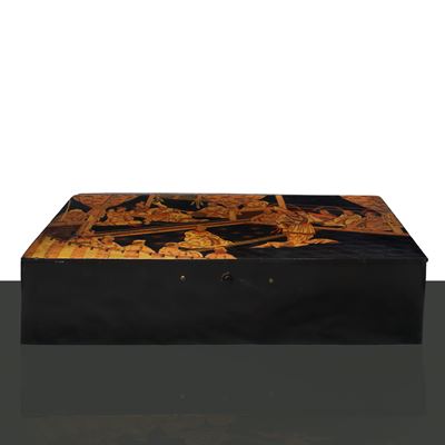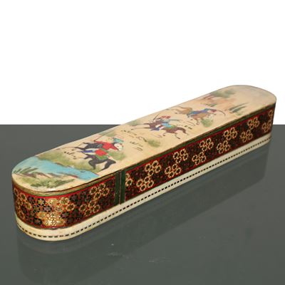 Astuccio orientale in legno con coperchio scorrevole dipinto a mano