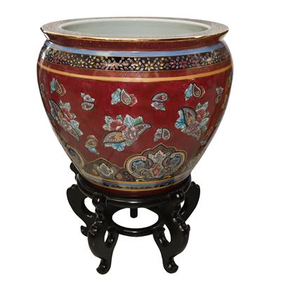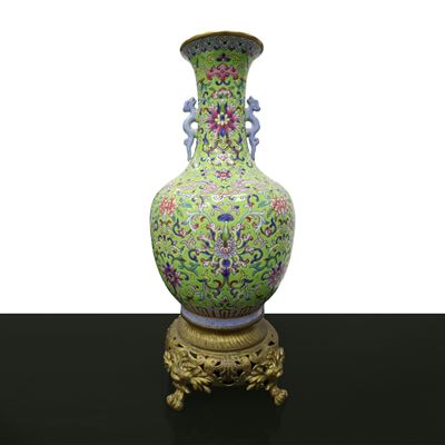 Vaso orientale a rullo cilindro in porcellana smaltata, Dinastia Quinq Famiglia Rosa