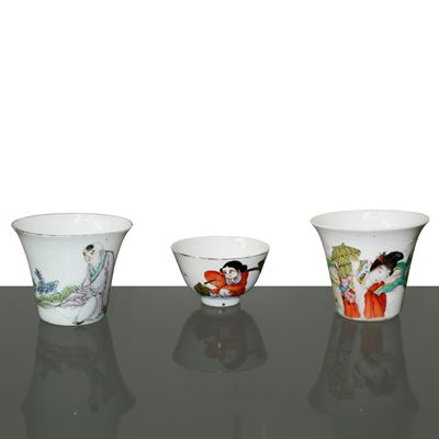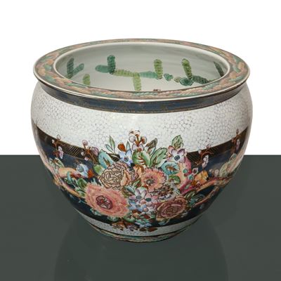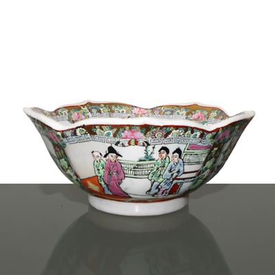Ciotola cinese smerlata in porcellana con scene di vita popolare