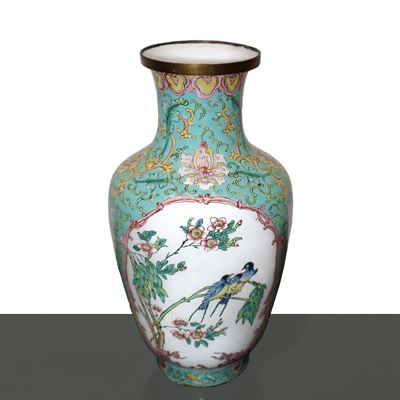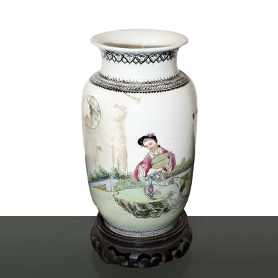 Vaso cinese a rollo cilindrico in porcellana famiglia rosa dinastia Quinq