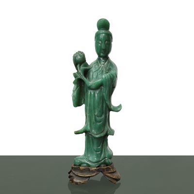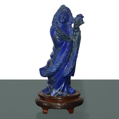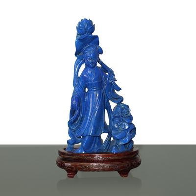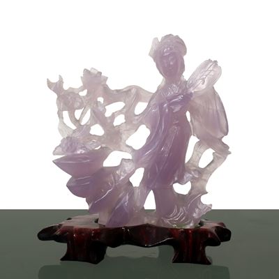 Guanin con fiore e ventaglio in quarzo rosa chiaro