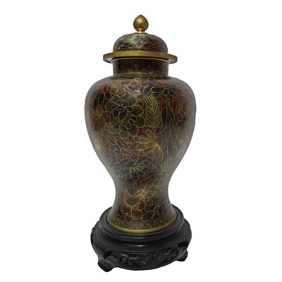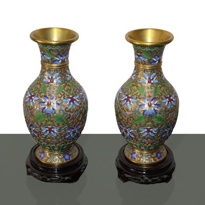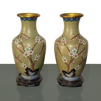 Coppia di vasi cinesi con lacca rosso cinabro e con decorazioni floreali intagliate