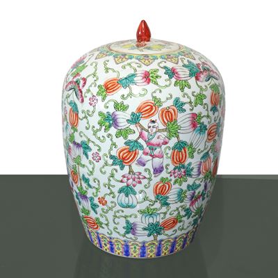 Grande vaso in porcellana fondo nero con decorazioni di frutta e fiori