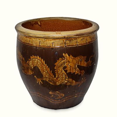 Vaso Yu Huchun, dinastia Quing con decori di banani, bamboo e pietre