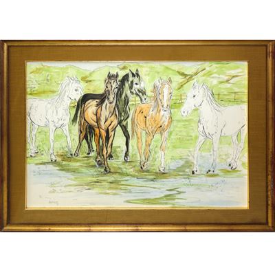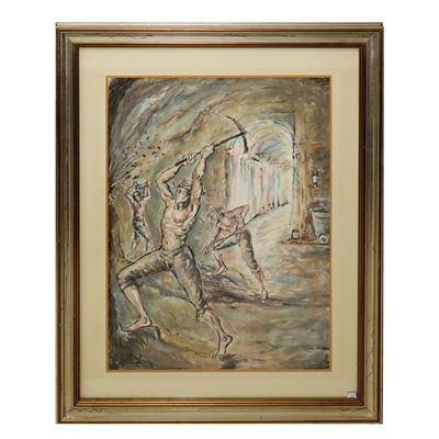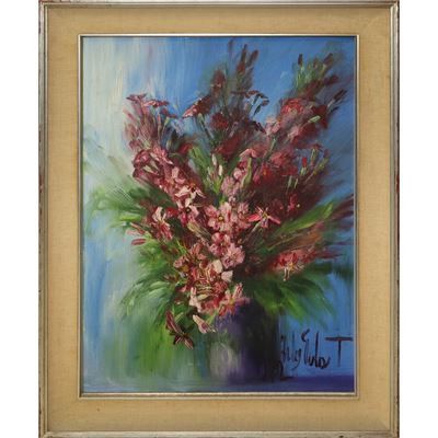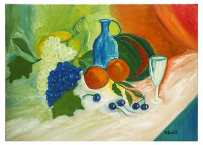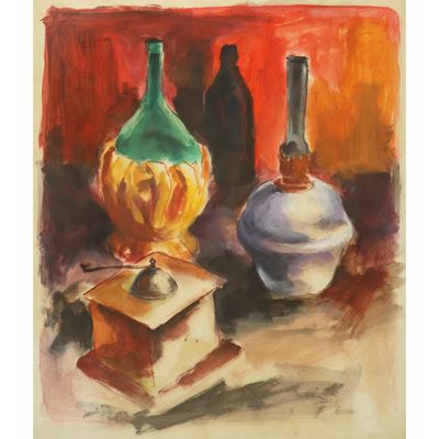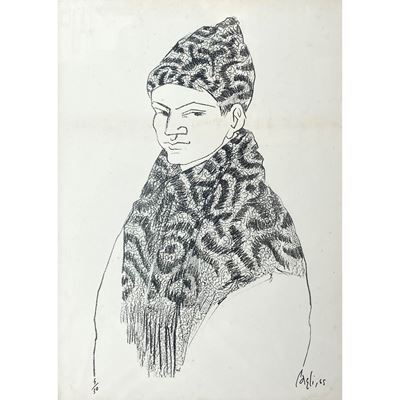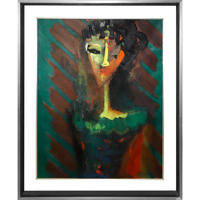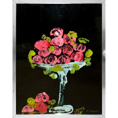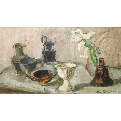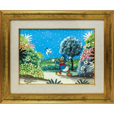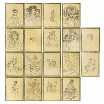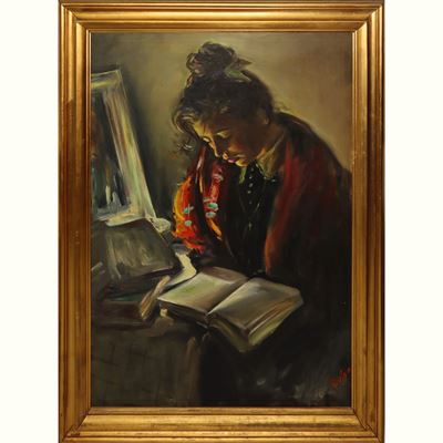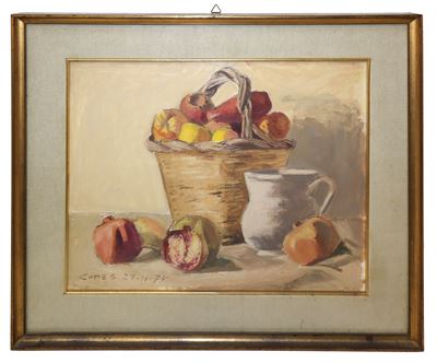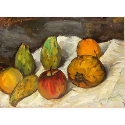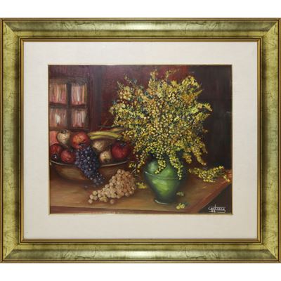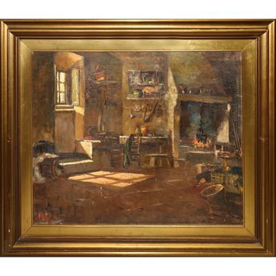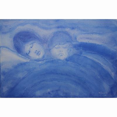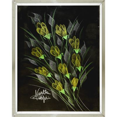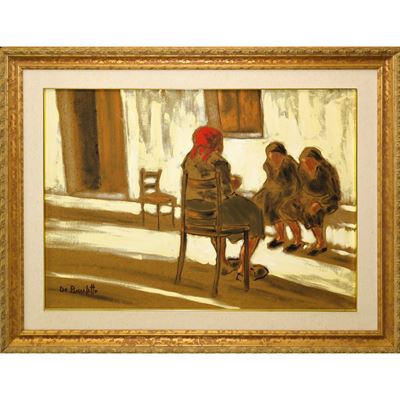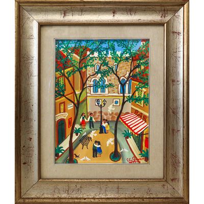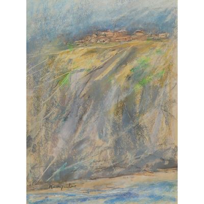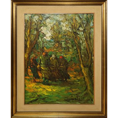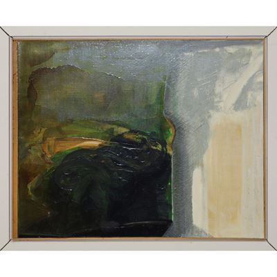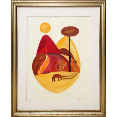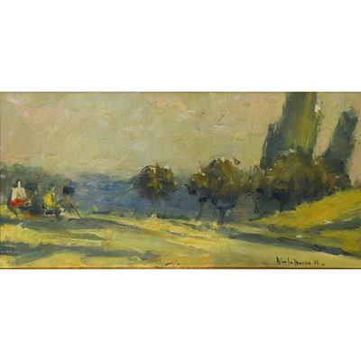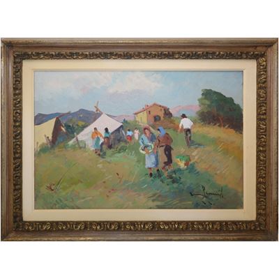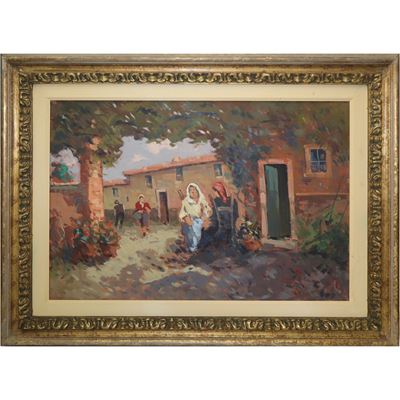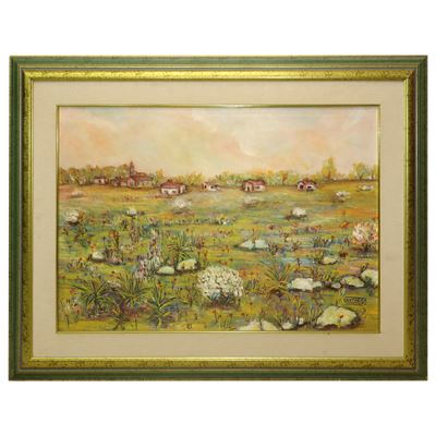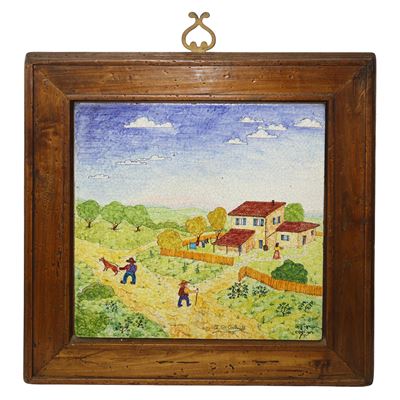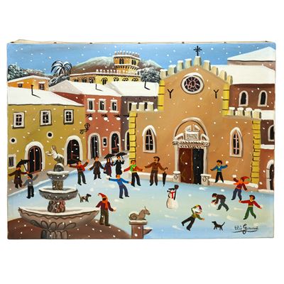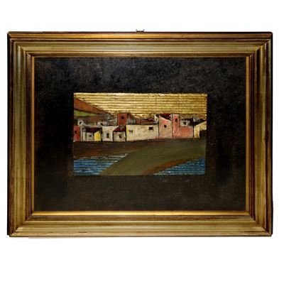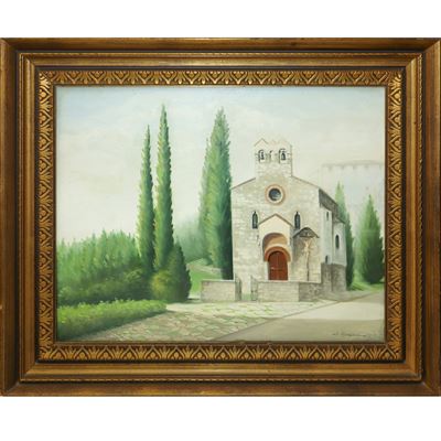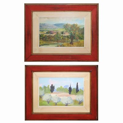 Coppia di Dipinti, Paesaggio con case innevate, Paesaggio con case e cipressi