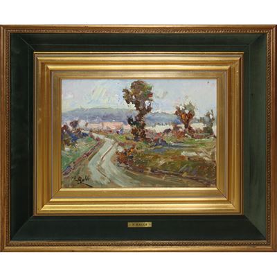 Coppia di dipinti, Strada con casa di campagna e Strada di campagna con cipressi