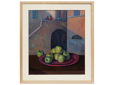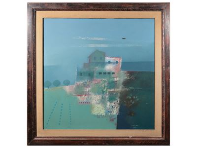 Natura Morta su fondo blu ( Argento e verde celestino) 1969
