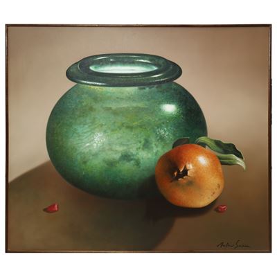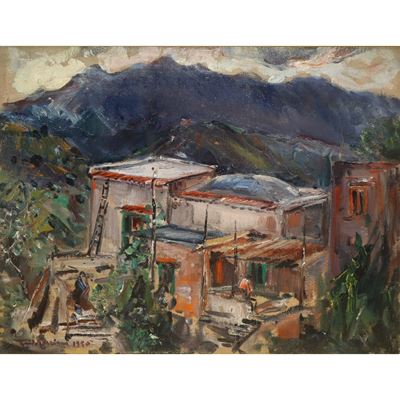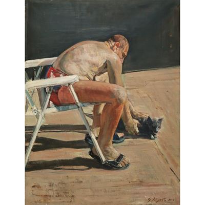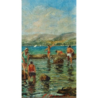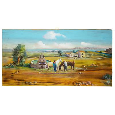 Grande pannello in lamina di ottone raffigurante Pescatore ad Acitrezza