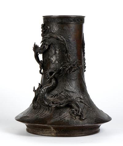 Vaso in bronzo a cera persa rastremato in forma di monte Fuji